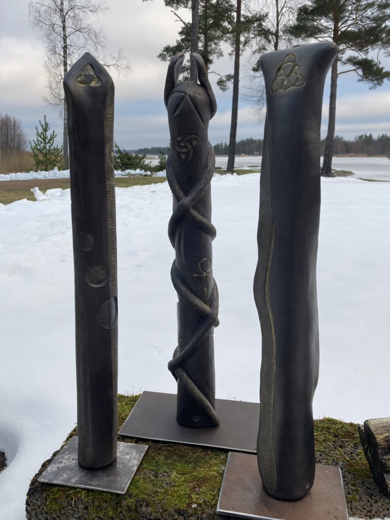 Fler skulpturer av stengodslera brända i 1200 grader finns i ateljén >